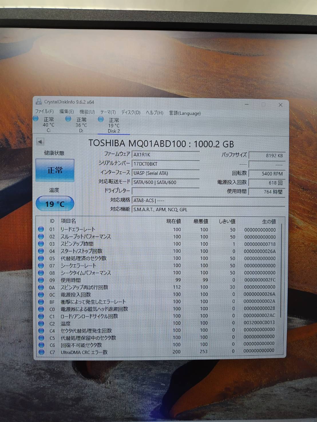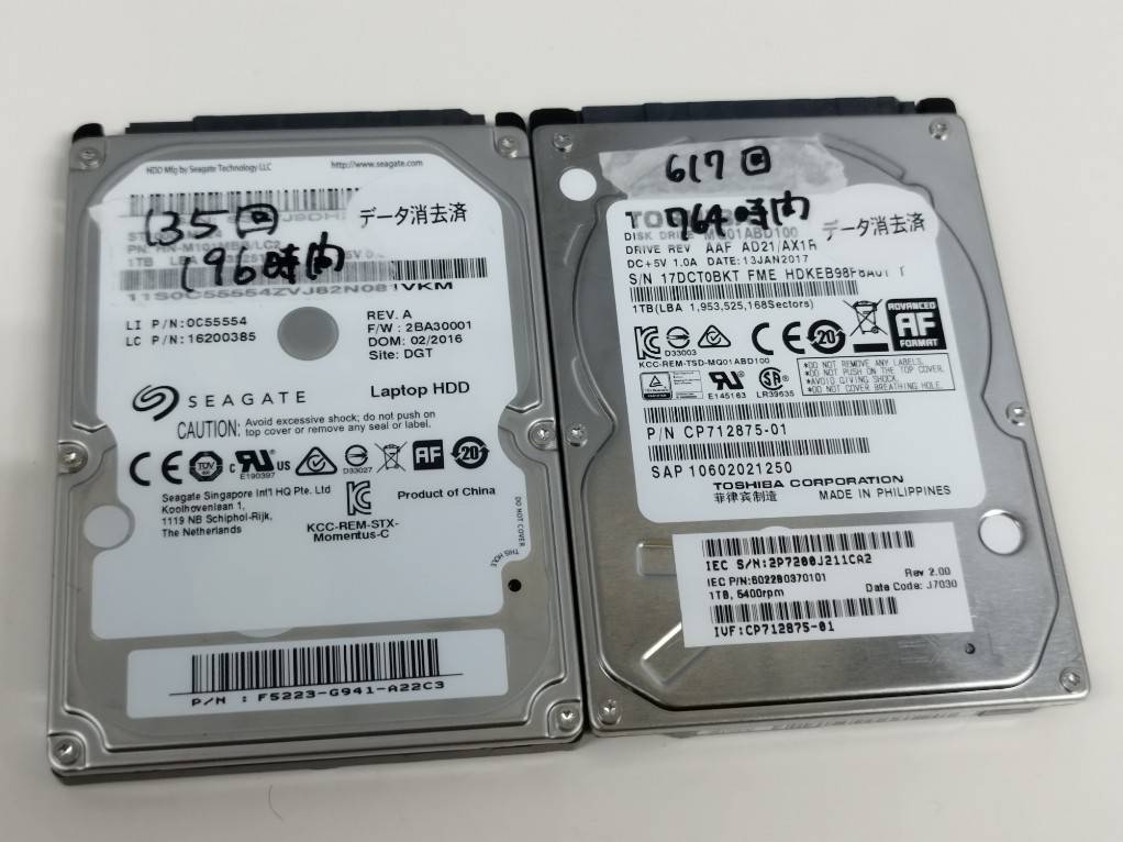 【中古パーツ】Seagate Laptop/TOSHIBA HDD1TB 2枚セット!