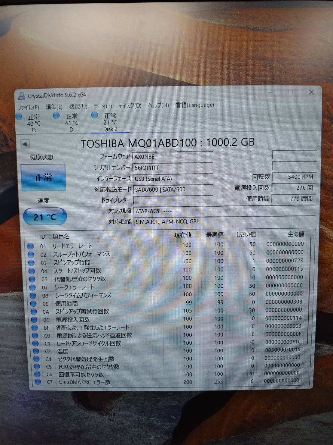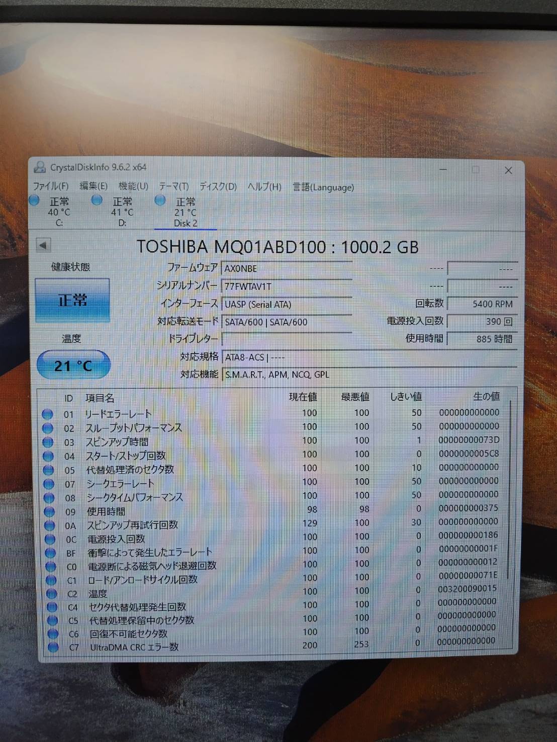 【中古パーツ】TOSHIBA HDD1TB 2枚セット!MQ01ABD100
