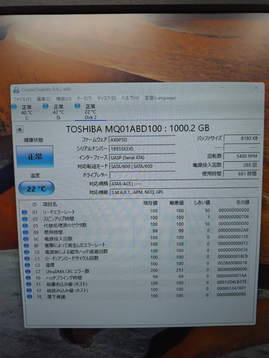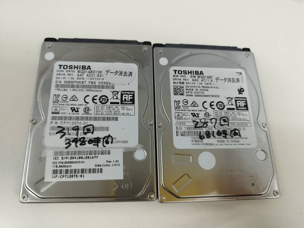 【中古パーツ】TOSHIBA/MQ01ABD100/HDD1TB 2枚セット!