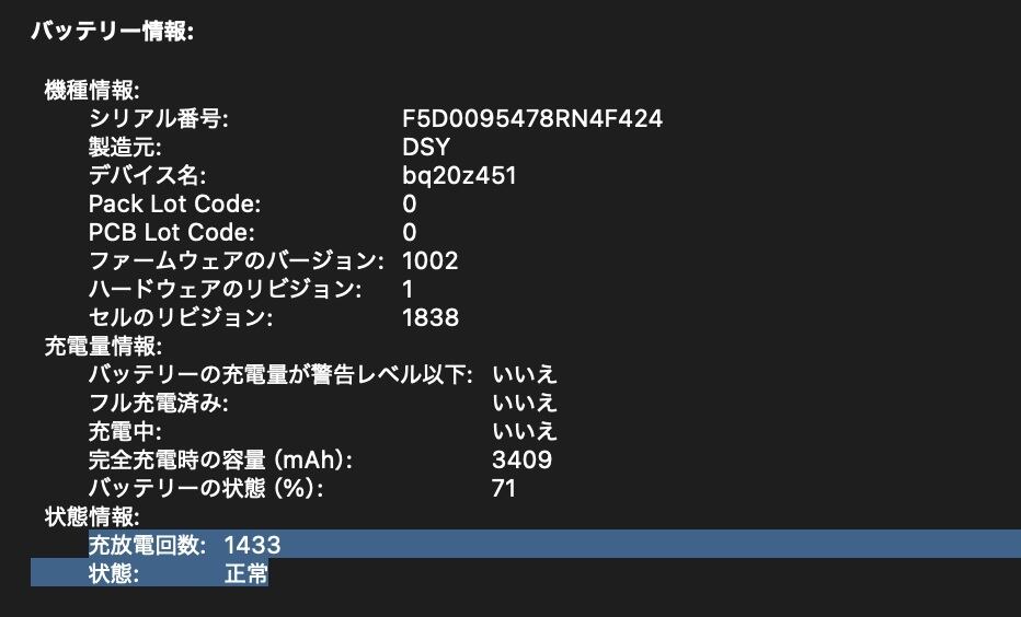 ・充放電回数:1433回