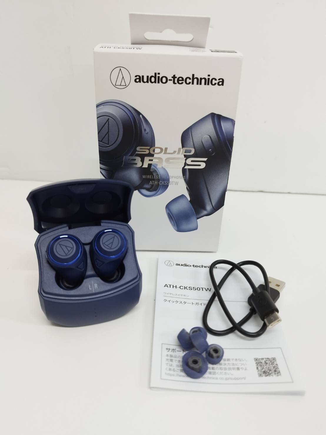 【良品】audio-technica SOLID BASS/ATH-CKS50TW/ワイヤレスイヤホン/ブルー