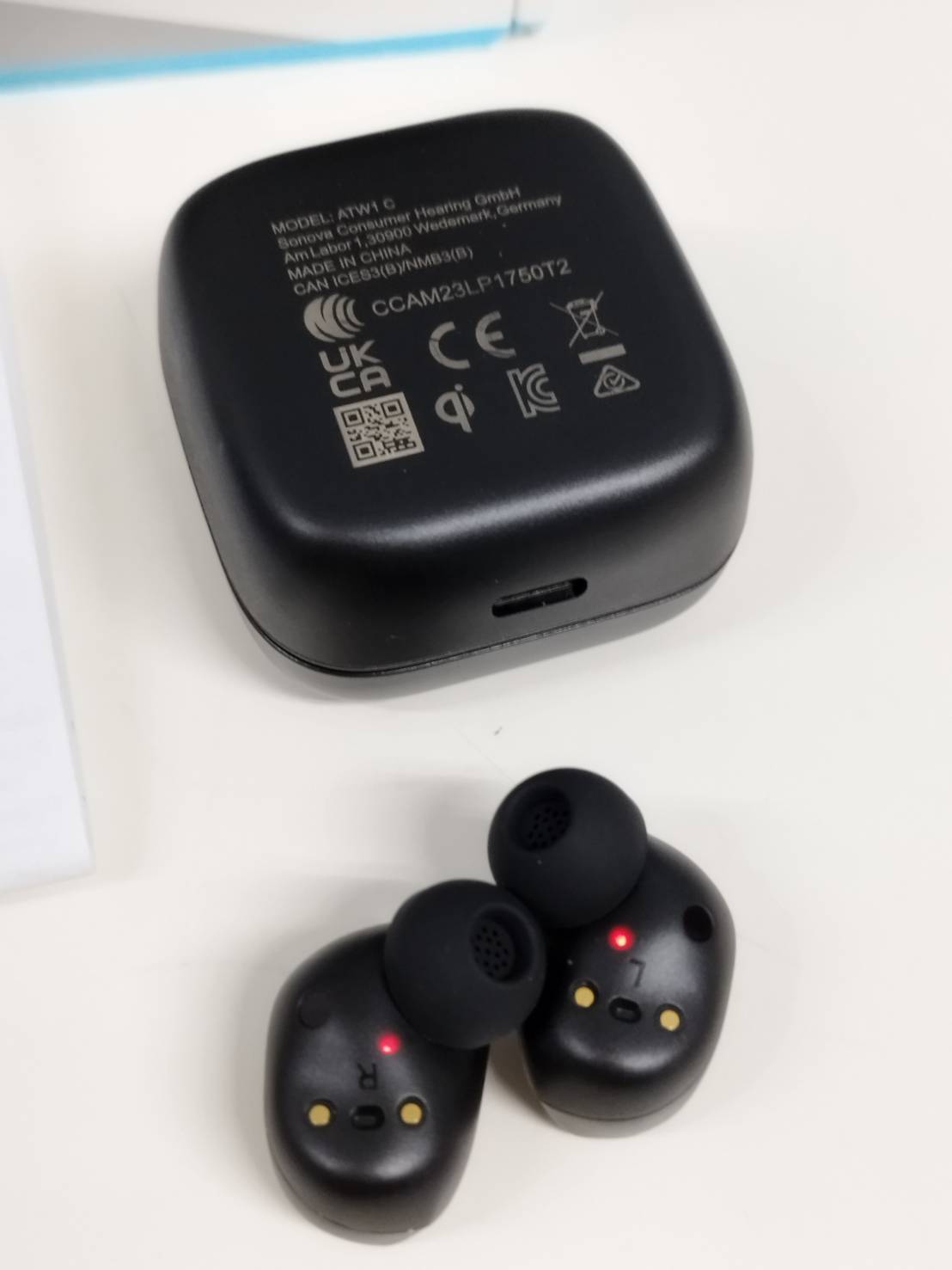 イヤホン、充電ケース、イヤーピース、Type-C to Type-Aケーブル、印刷物(画像1枚目に写っているもの)