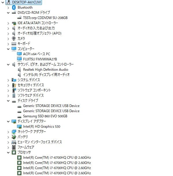 ・CPU:Intel Core i7-6700HQ 2.60GHz(2.60GHz)