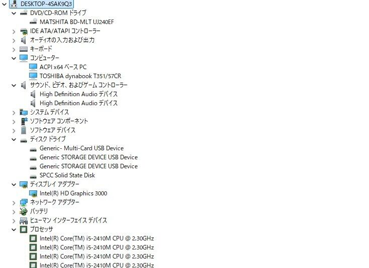 ・CPU:Intel Core i5-2410M 2.30GHz(2.30GHz)