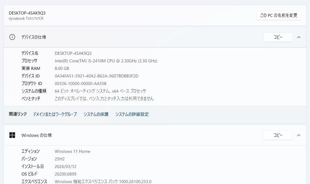 ・OS:Windows11 Home/25H2(ライセンス認証・Windows update済)