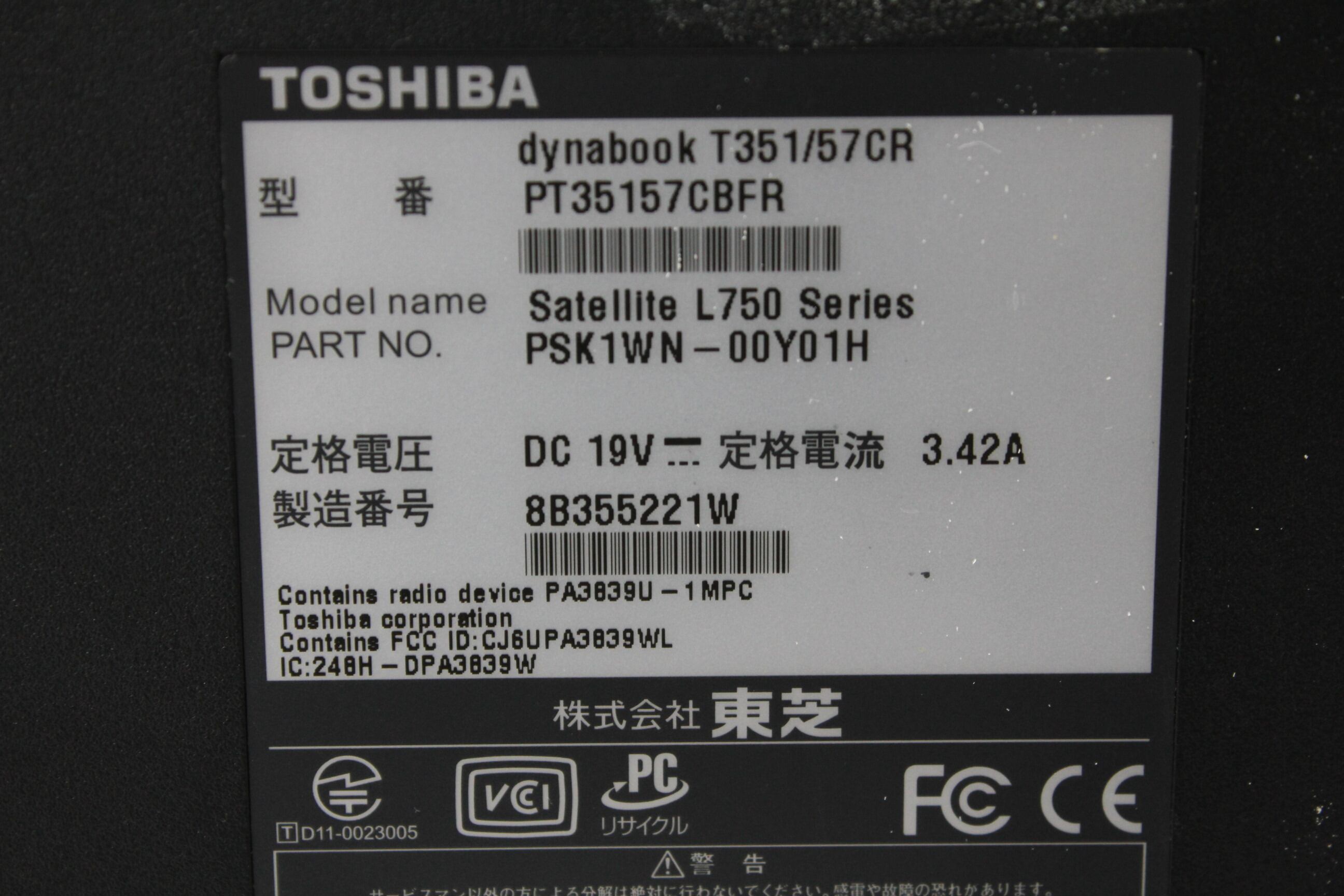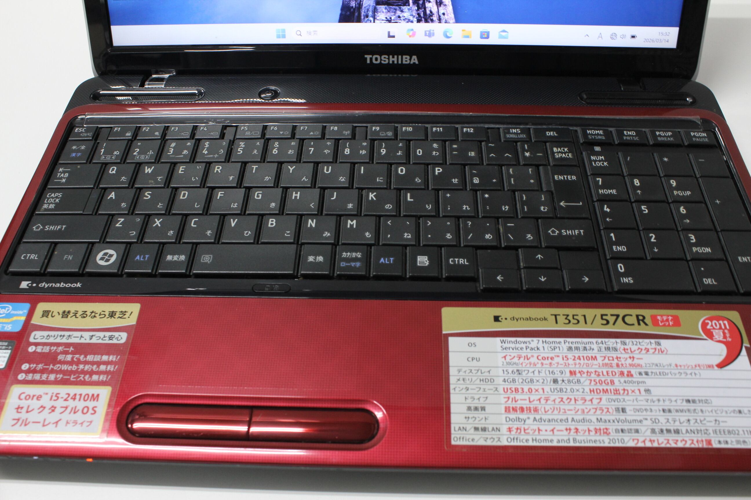 【中古ノートPC】東芝〈dynabook T351/57CR〉Intel Core i5/SSD256GB/メモリ8GB ④