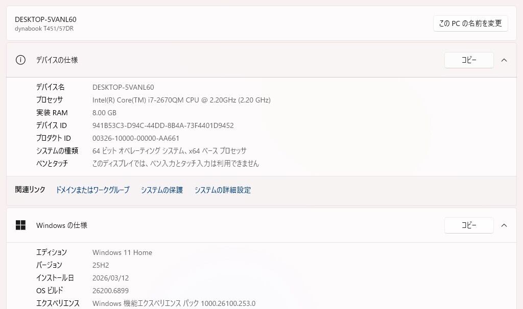 ・OS:Windows11 Home/25H2(ライセンス認証・Windows update済)