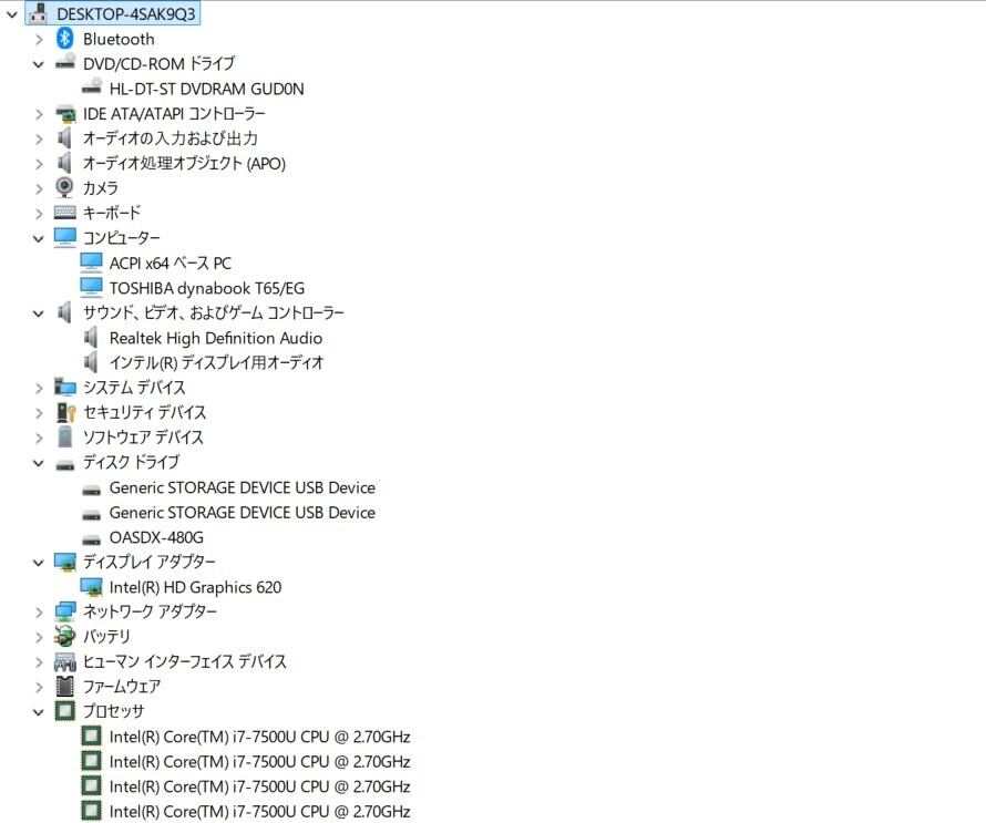 ・CPU:Intel Core i7-7500U 2.70GHz(2.90GHz)