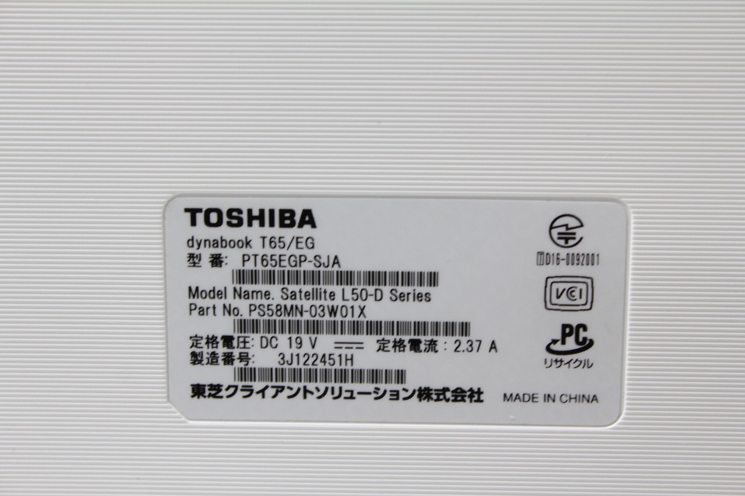 【中古ノートPC】東芝〈dynabook T65/EG〉Intel Core i7/SSD480GB/メモリ8GB ④