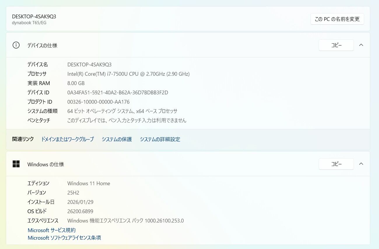 ・OS:Windows11 Home/25H2(ライセンス認証・Windows update済)