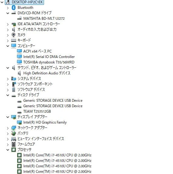 ・CPU:Intel Core i7-4510U 2.00GHz(2.60GHz)
