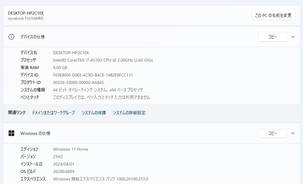 ・OS:Windows11 Home/25H2(ライセンス認証・Windows update済)
