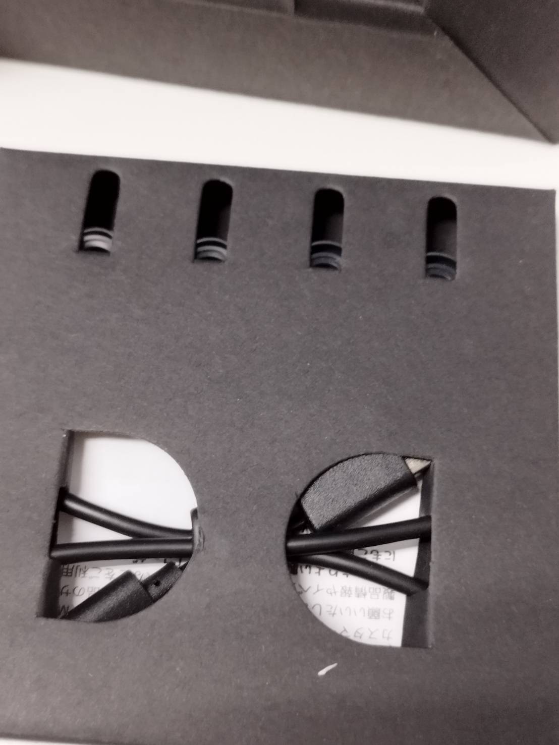 付属のイヤーピースとケーブルは未使用状態です。