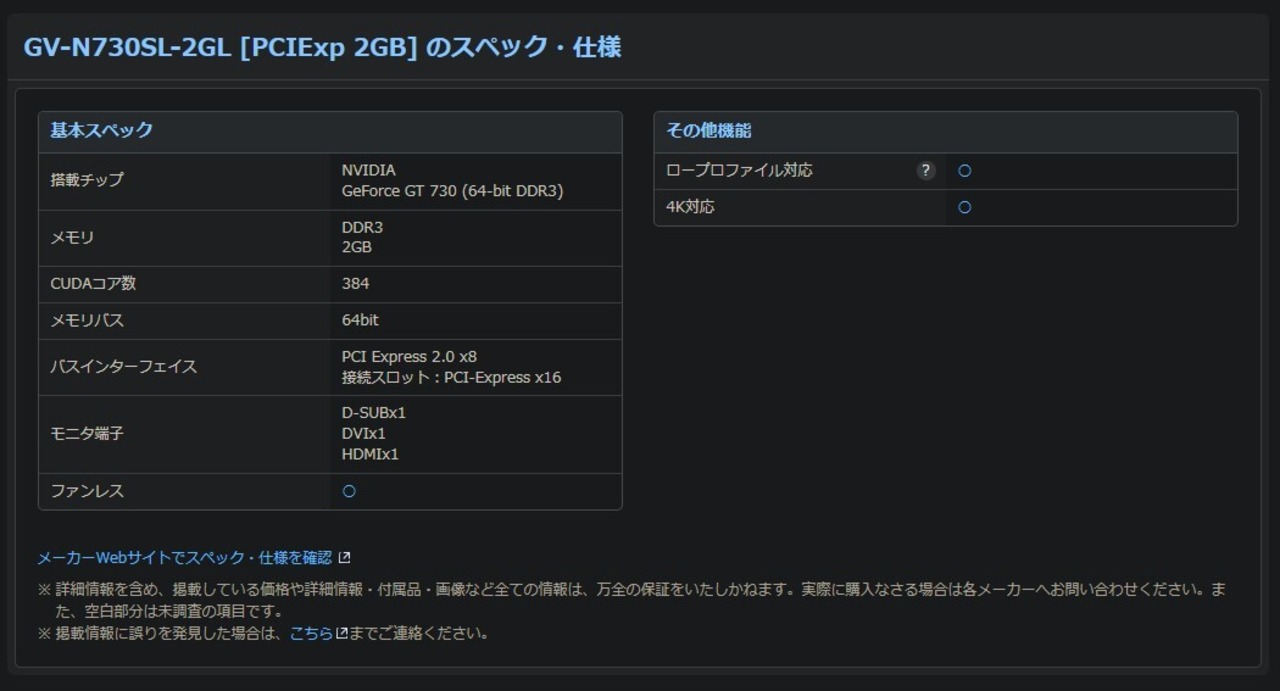 GIGABYTE/GV-N730SL-2GL [PCIExp 2GB]/グラフィックボード ④
