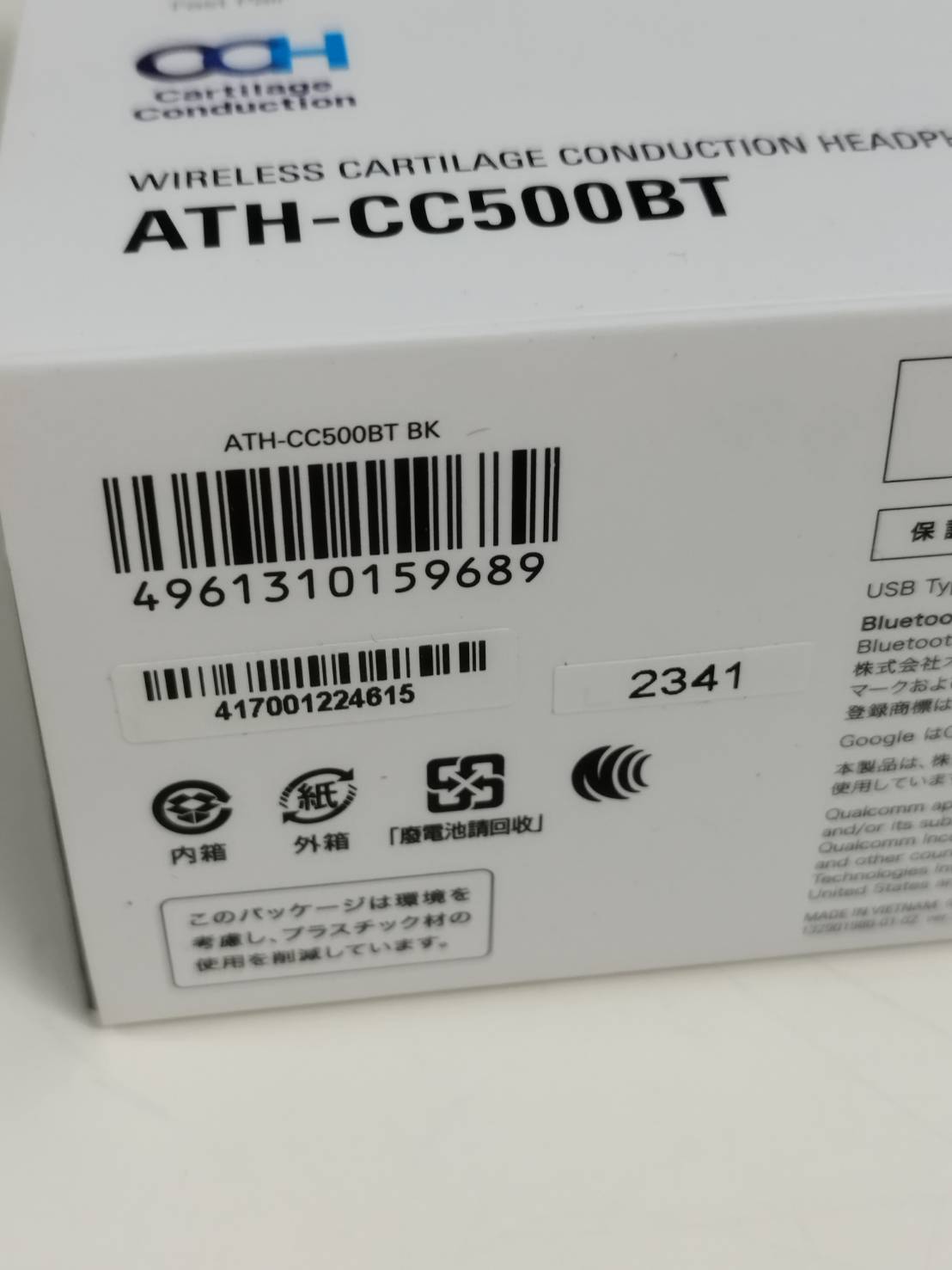 【未使用に近い】audio-technica ATH-CC500BT/ワイヤレス骨伝導イヤホン