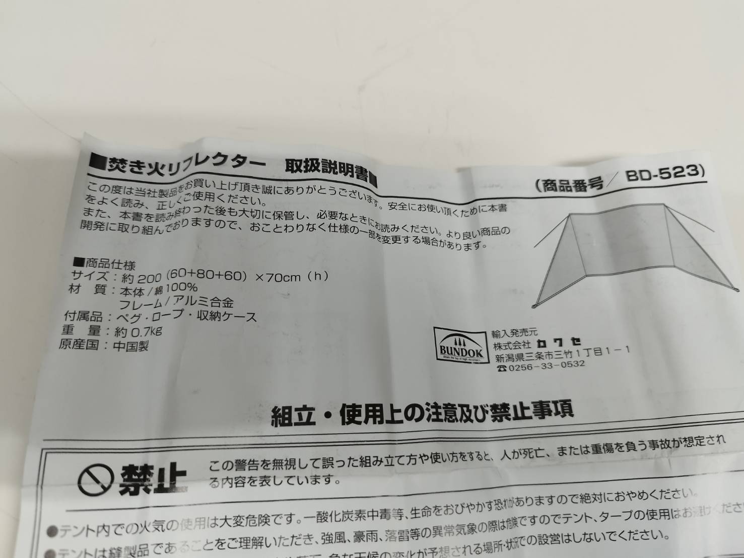【未使用に近い】BUNDOK バンドック BD-523/焚き火リフレクター