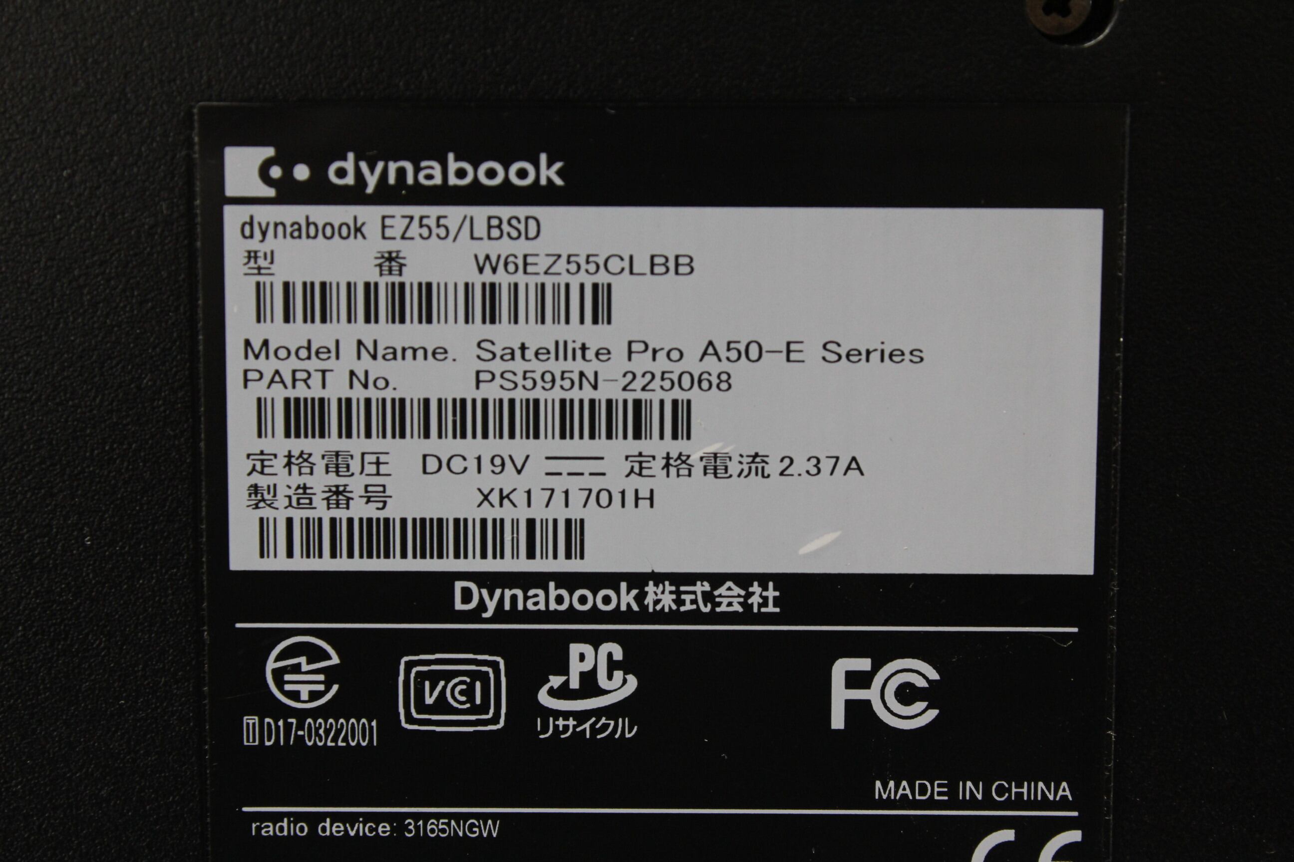 ・型番:W6EZ55CLBB