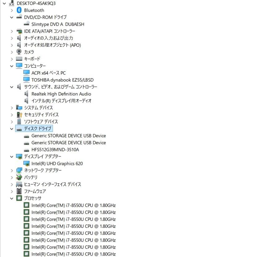 ・CPU:Intel Core i7-8550U 1.80GHz(1.99GHz)