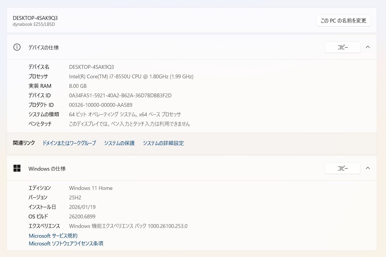 ・OS:Windows11 Home/25H2(ライセンス認証・Windows update済)