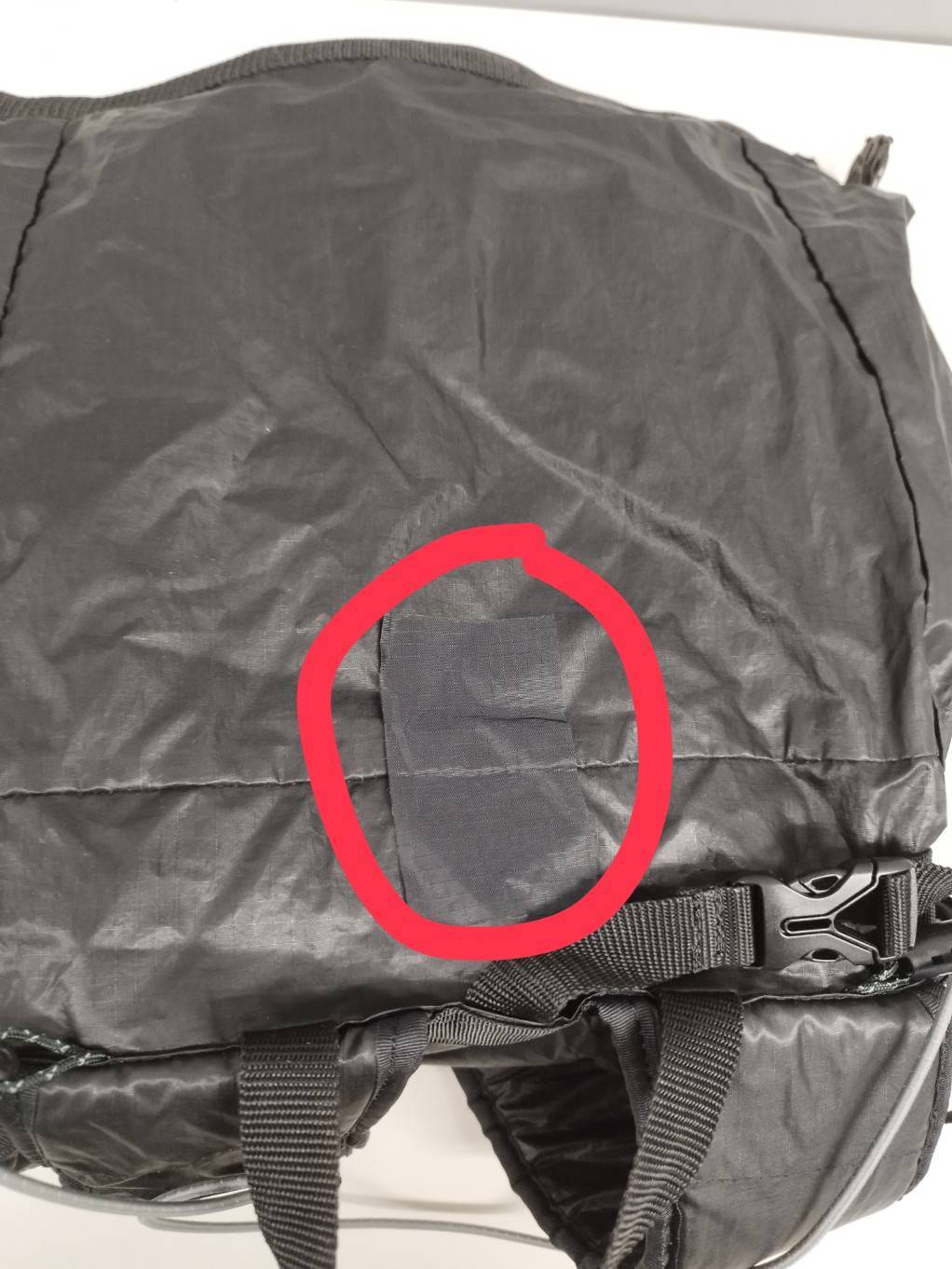 上部にあるテープのような表面の生地の端がややとれています。(画像4枚目ご確認ください)