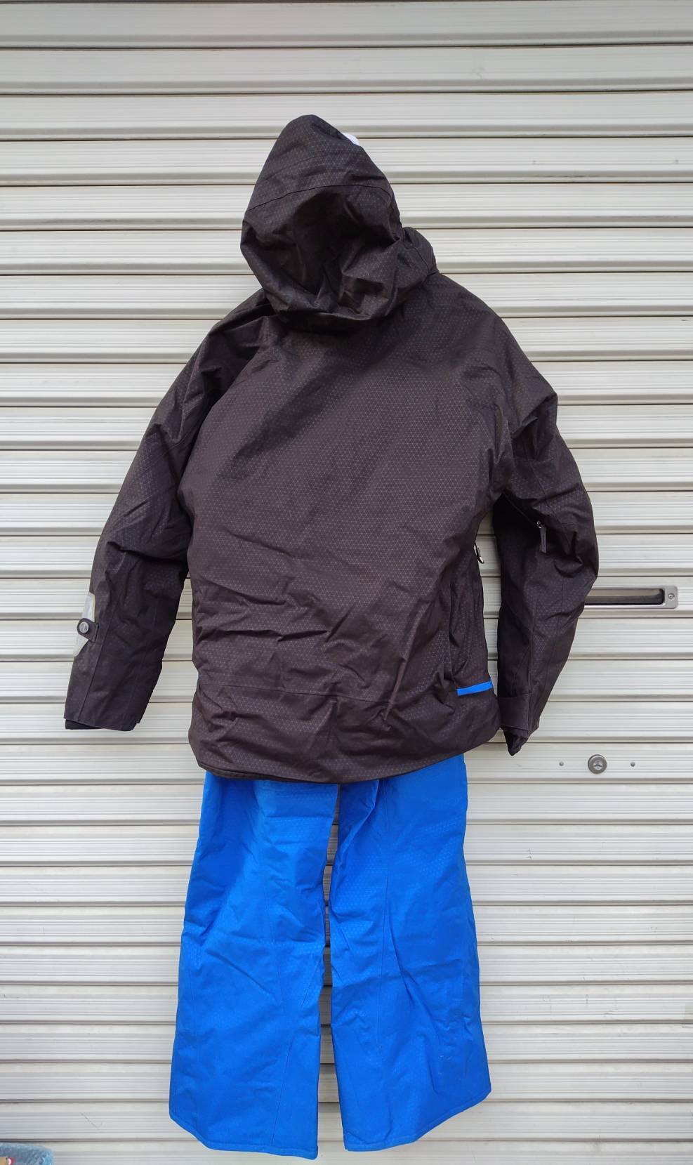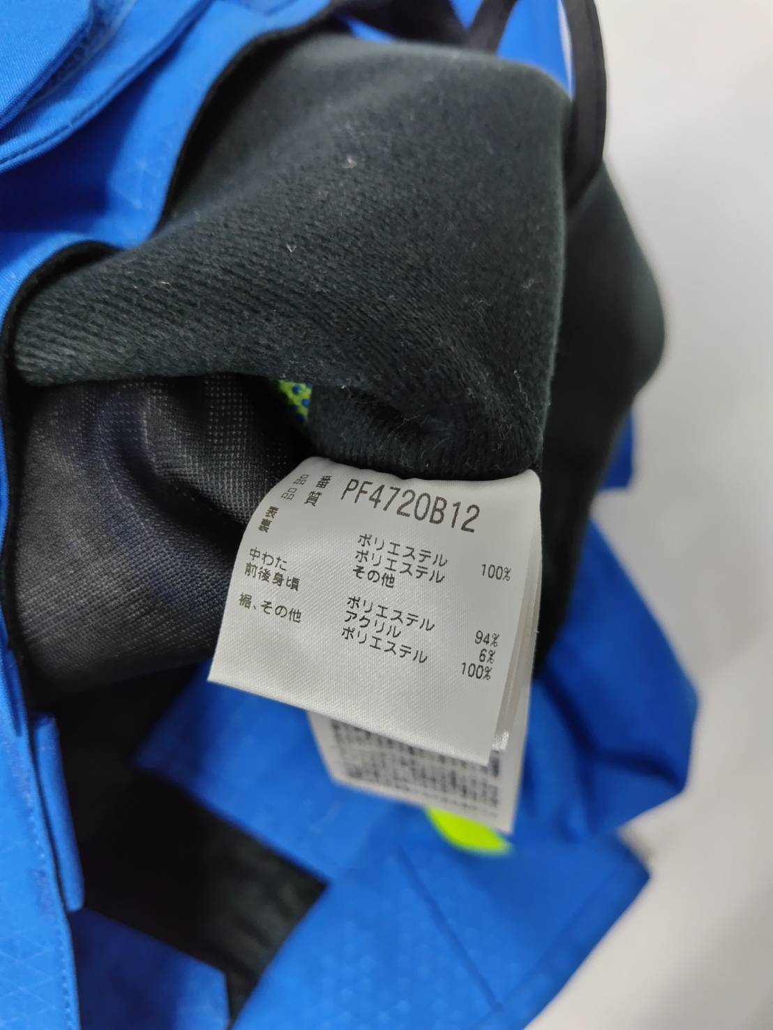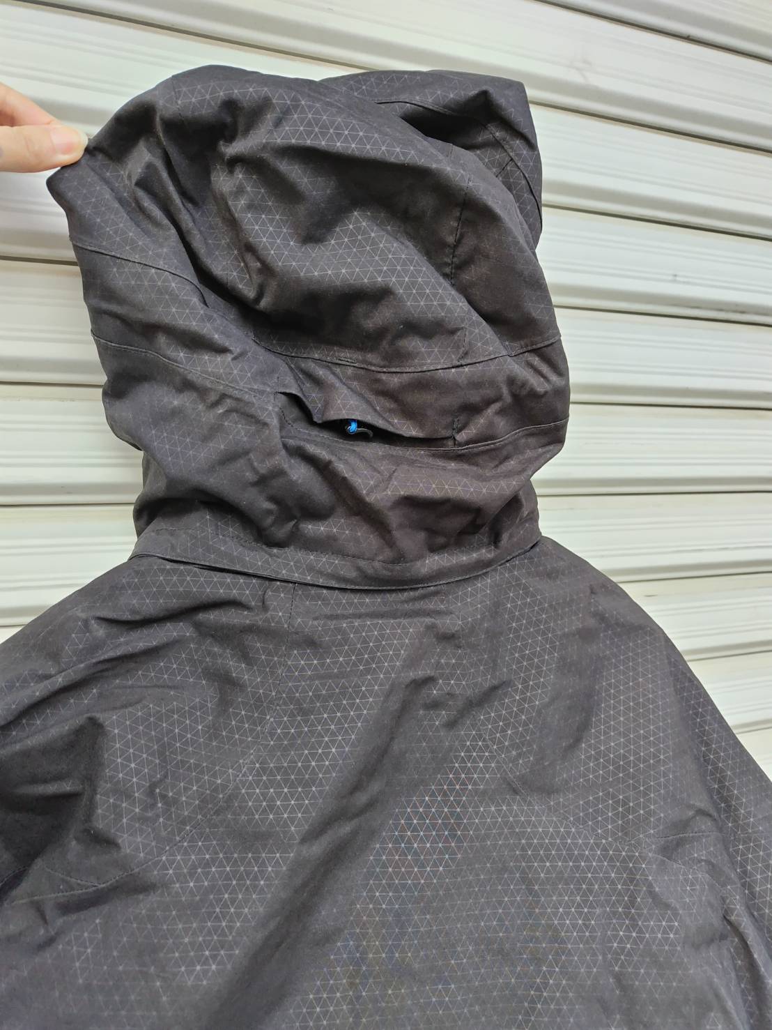 ウェアに数ヶ所薄汚れがあります。襟にスレ、フードに汚れあり。