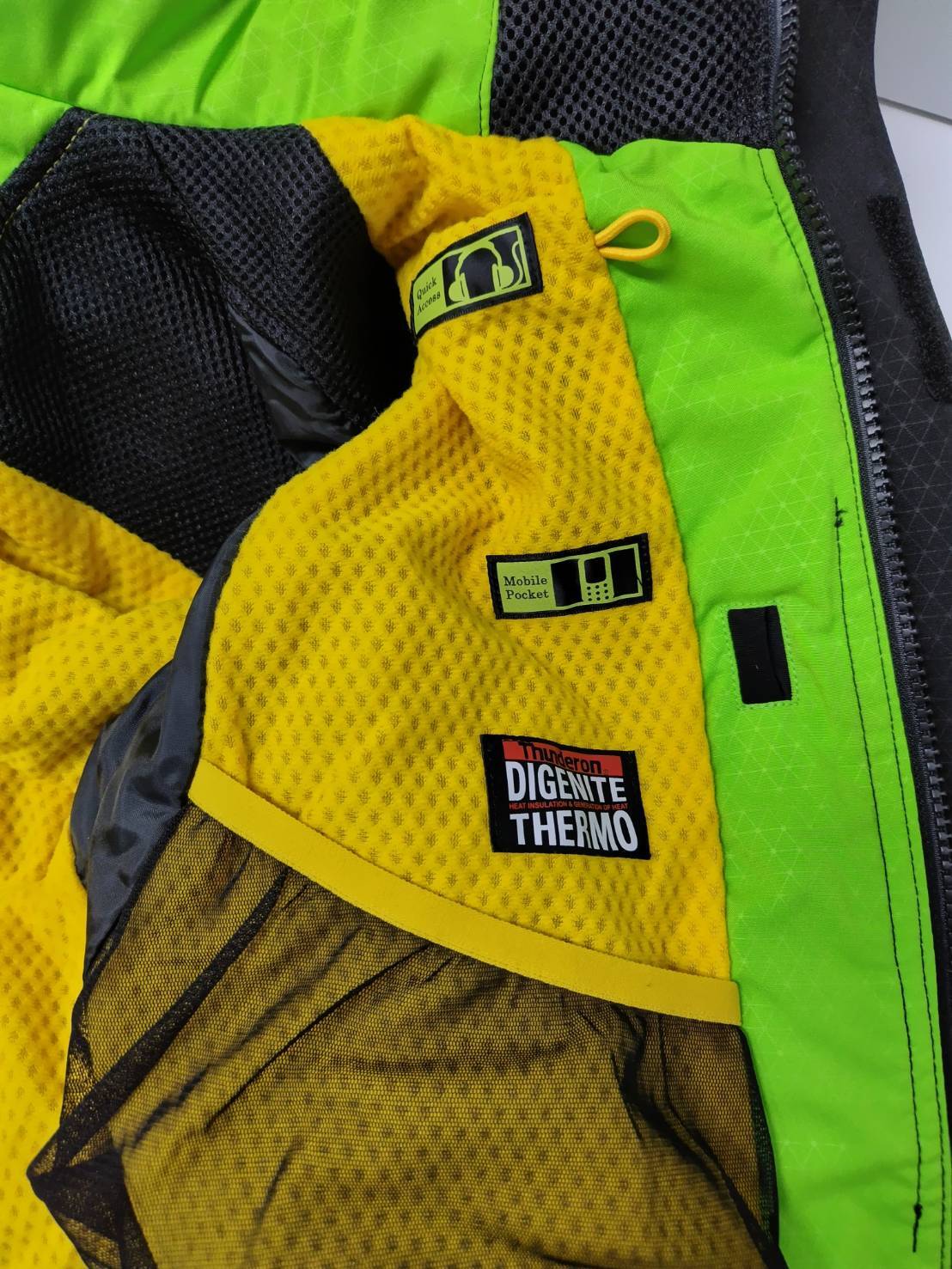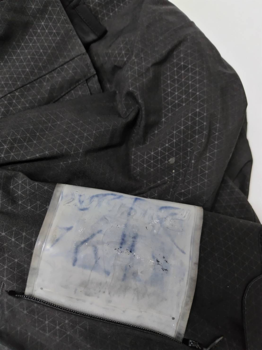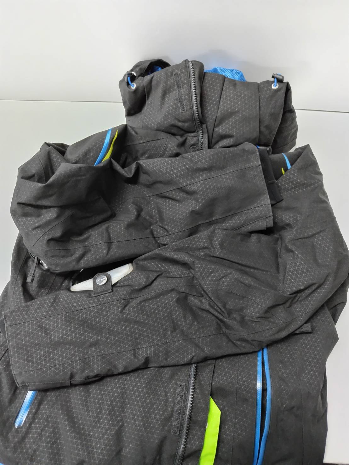 ウェアに数ヶ所薄汚れがあります。襟にスレ、フードに汚れあり。