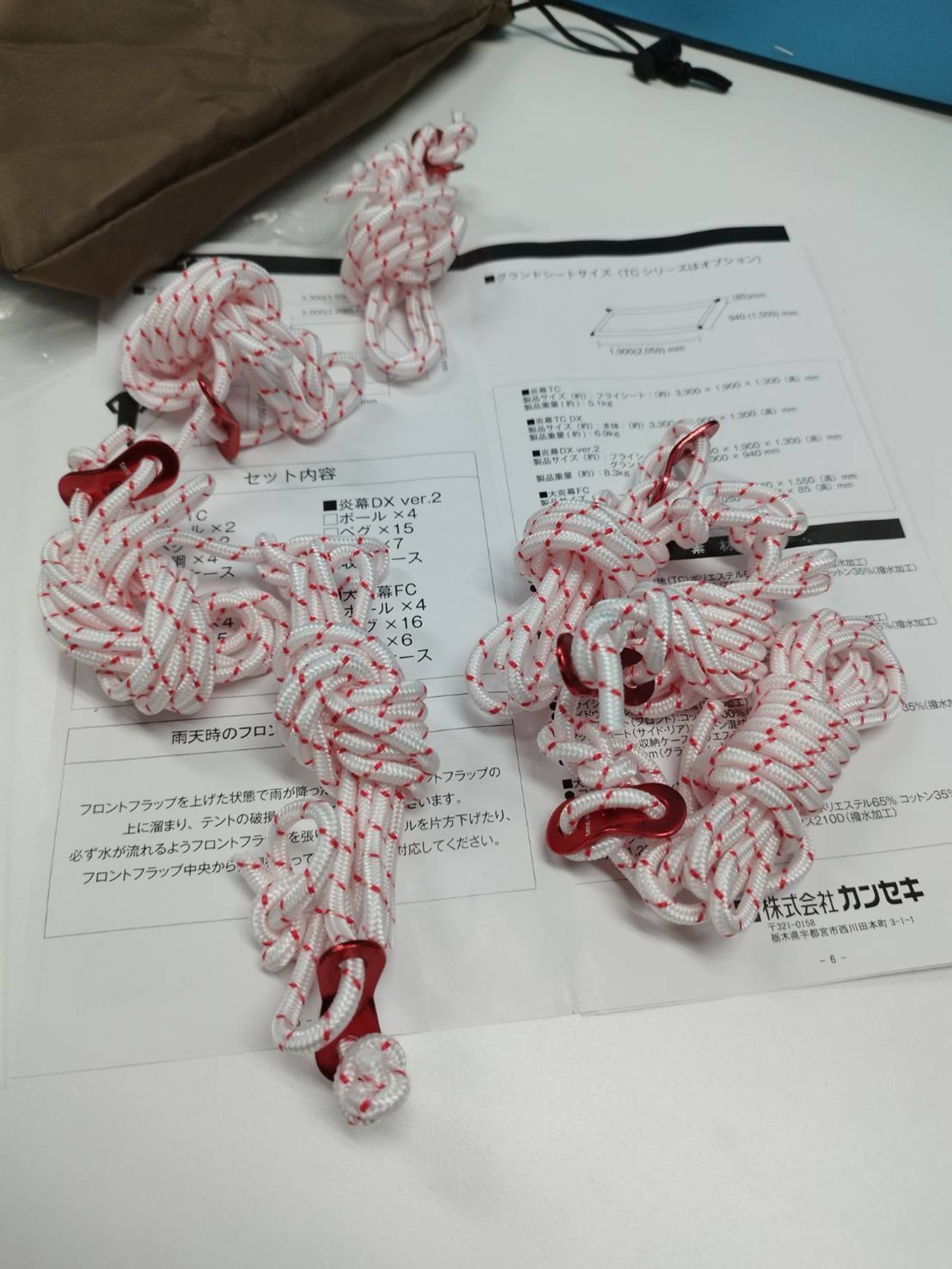 おまけのテント張網ストレッチコード4本組は未開封です。