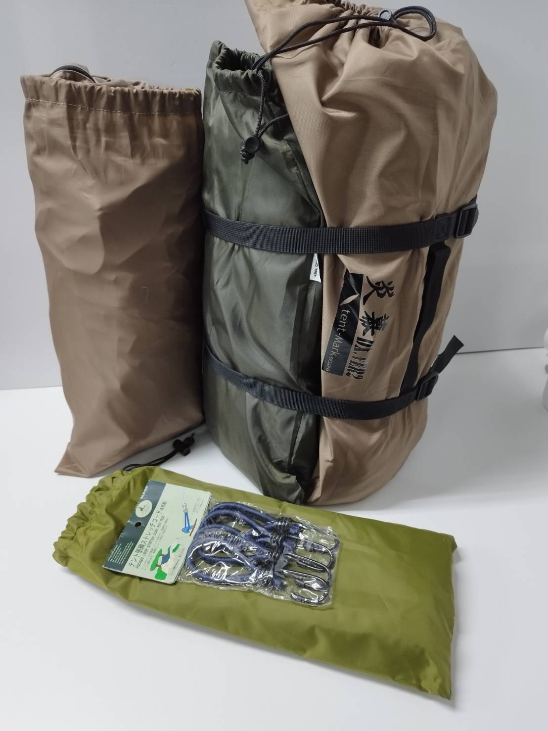 テント、収納袋、ペグ、ポール、張網、テント張網ストレッチコード、説明書(画像1枚目に写っているもの)