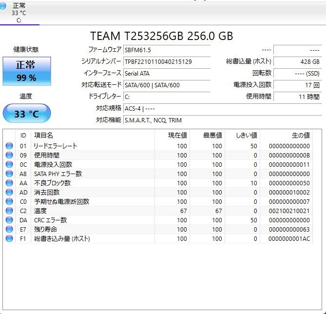 ・ストレージ:SSD 256GB