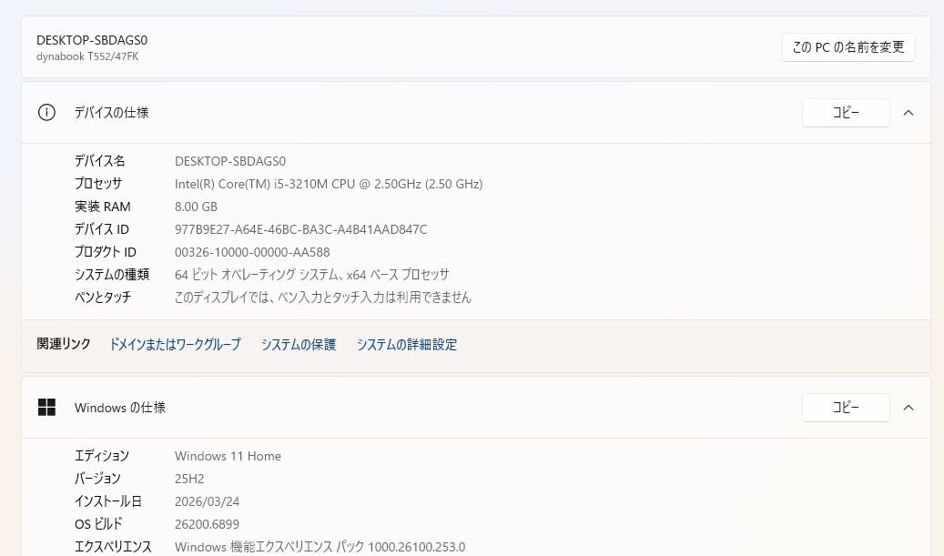 ・OS:Windows11 Home/25H2(ライセンス認証・Windows update済)