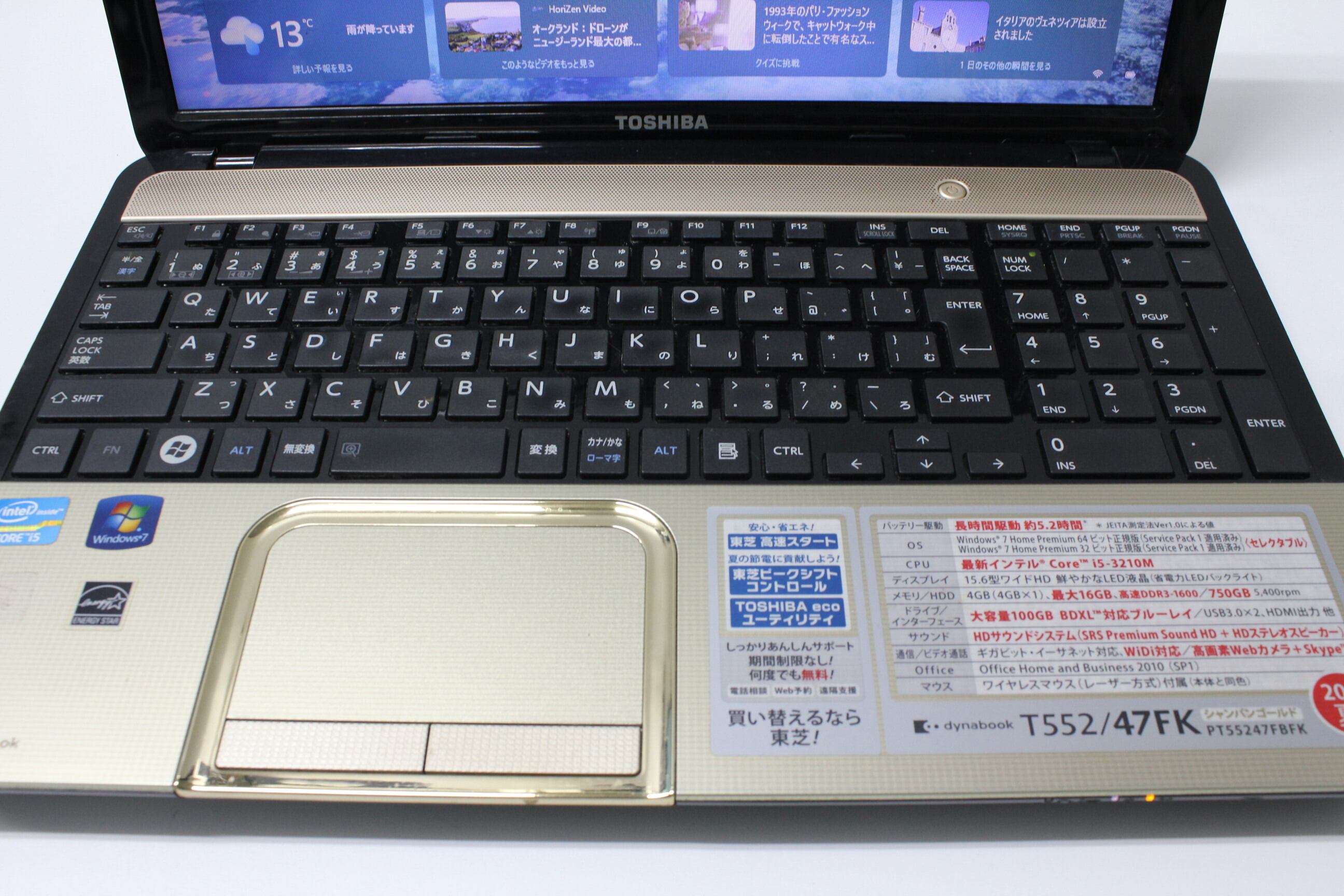 【中古ノートPC】東芝〈dynabook T552/47FK〉Intel Core i5/SSD256GB/メモリ8GB ⑤