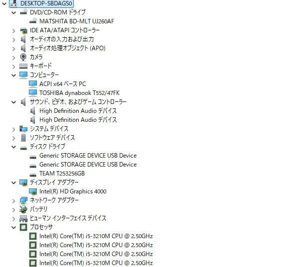 ・CPU:Intel Core i5-3210M 2.50GHz(2.50GHz)