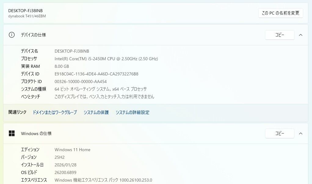・OS:Windows11 Home/25H2(ライセンス認証・Windows update済)