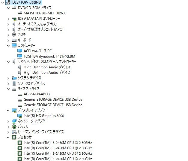 ・CPU:Intel Core i5-2450M 2.50GHz(2.50GHz)