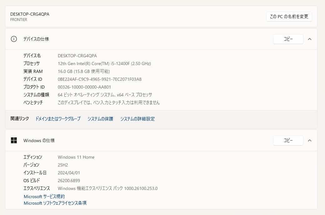 ・OS:Windows11 Home/25H2(ライセンス認証・Windows update済)