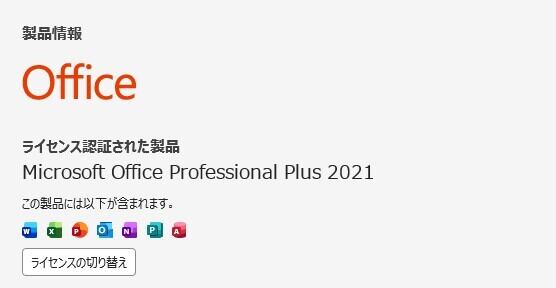 ・Office Professional Plus 2021 ライセンス認証済み(プロダクトキーなどは付属しません)
