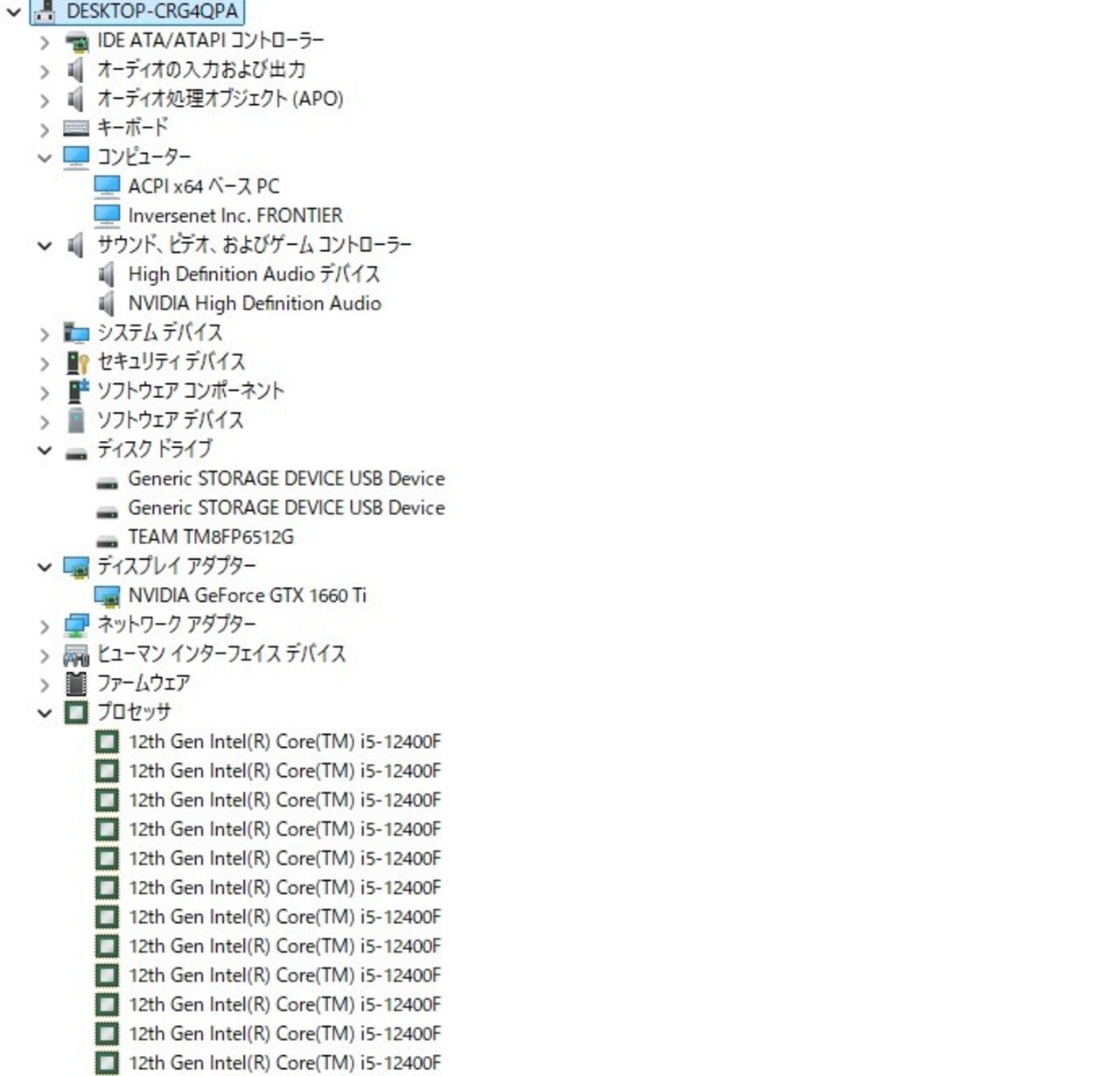 【中古デスクトップPC】FRONTIER/Intel Core i5-12400F/SSD512GB/メモリ16GB/GTX1660Ti ⑤