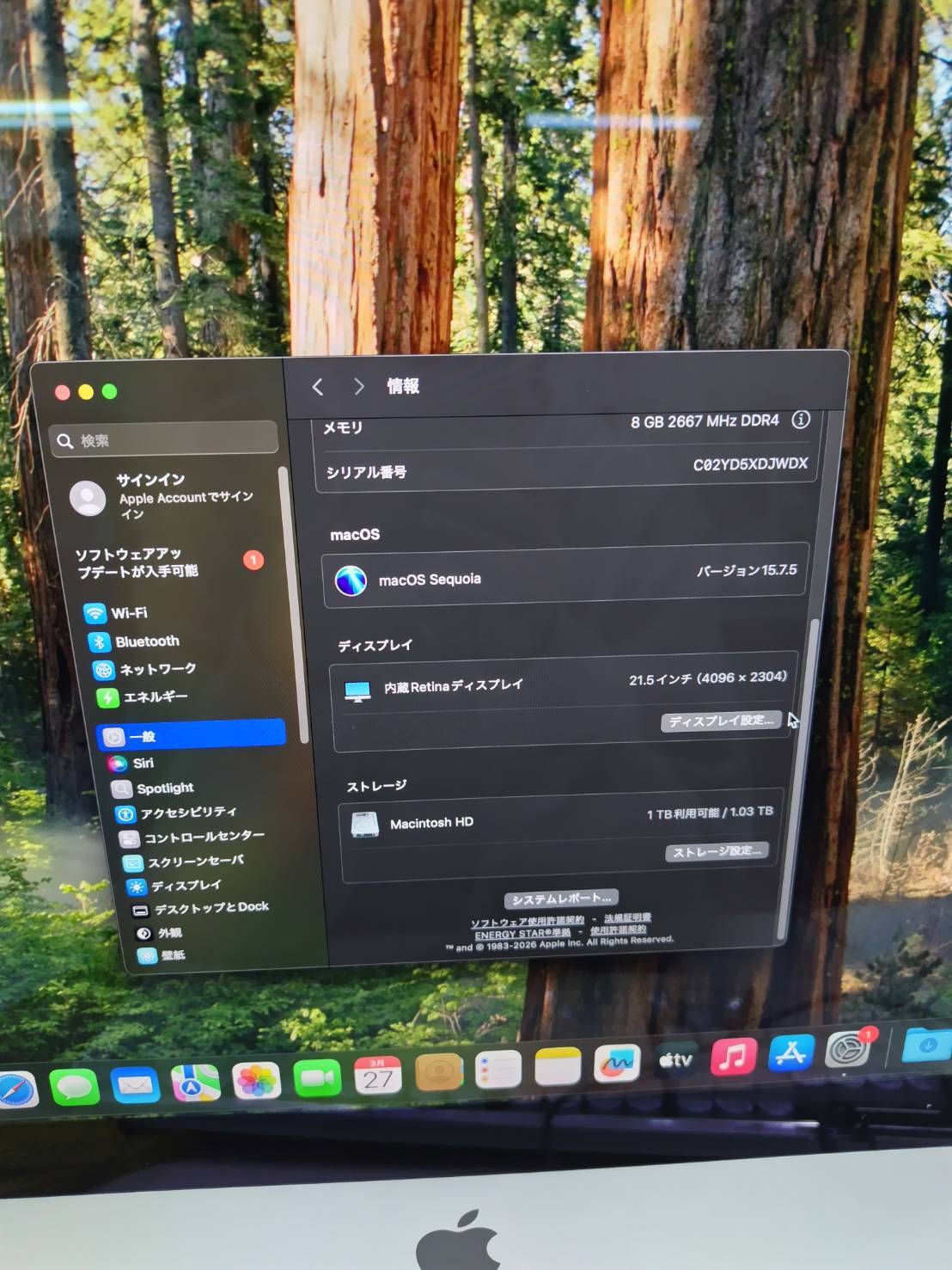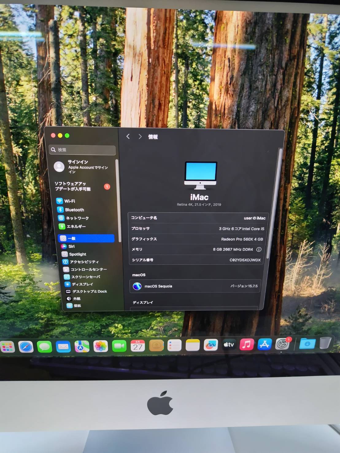 iMac(Retina 4K,21.5インチ,2019年モデル)HDD1TB/8GB〈MRT32J/A〉②