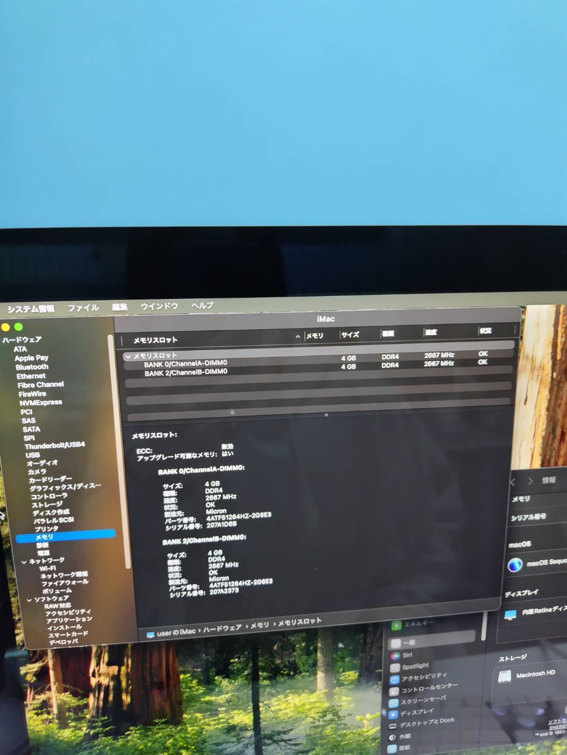 ・メモリ:8GB(4GB × 2)