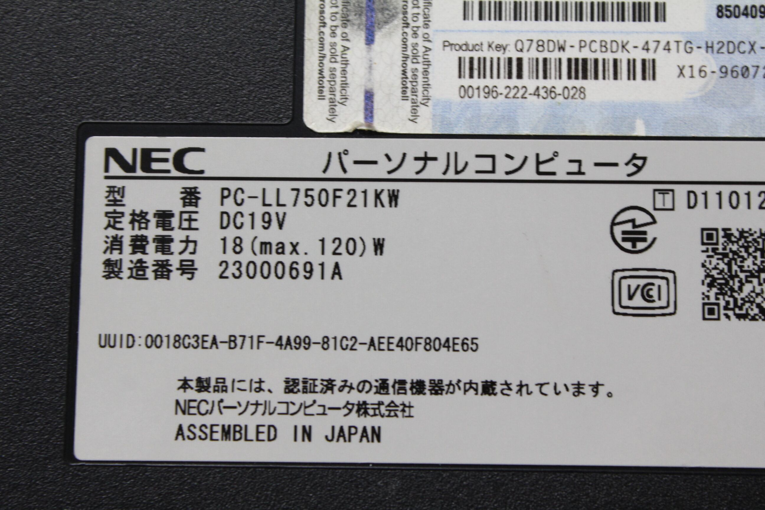 ・型番:PC-LL750F21KW