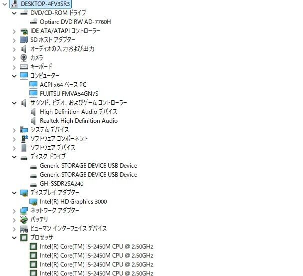 ・CPU:Intel Core i5-2450M 2.50GHz(2.50GHz)