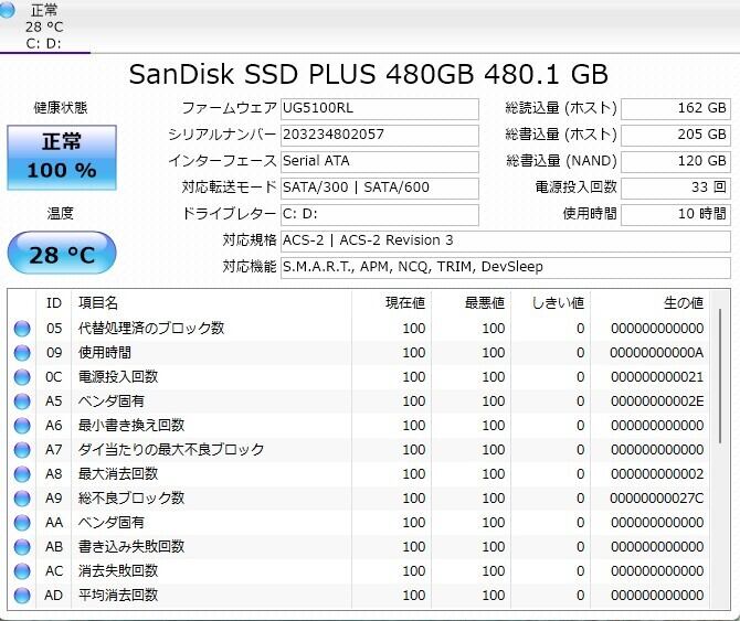 ・ストレージ:SSD 480GB