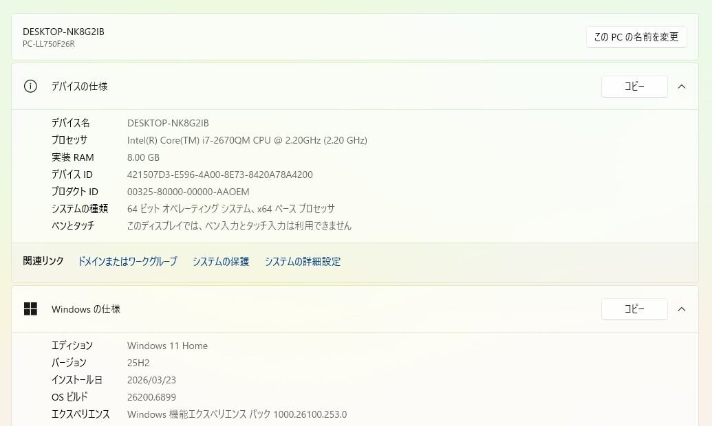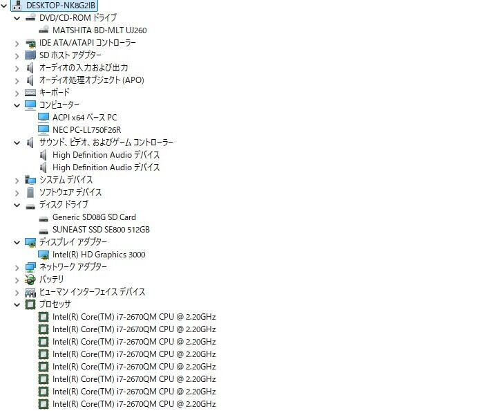 ・CPU:Intel Core i7-2670QM 2.20GHz(2.20GHz)