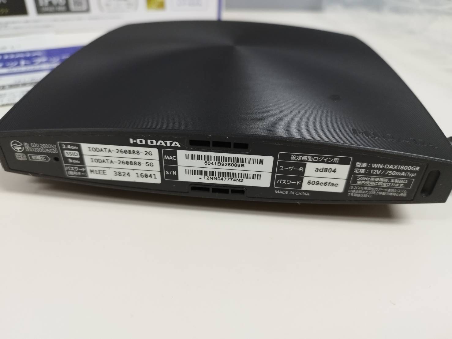 【良品】I-O DATA WN-DAX1800GR Wi-Fi6対応/無線LANルーター