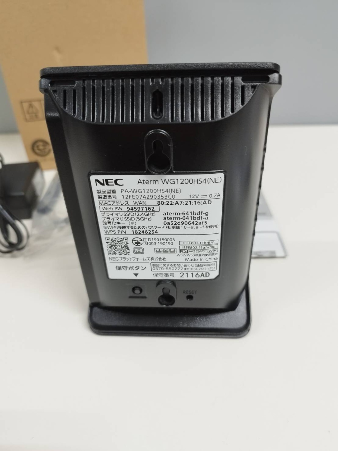 【未使用に近い】NEC Aterm PA-WG1200HS4/無線LANルーター
