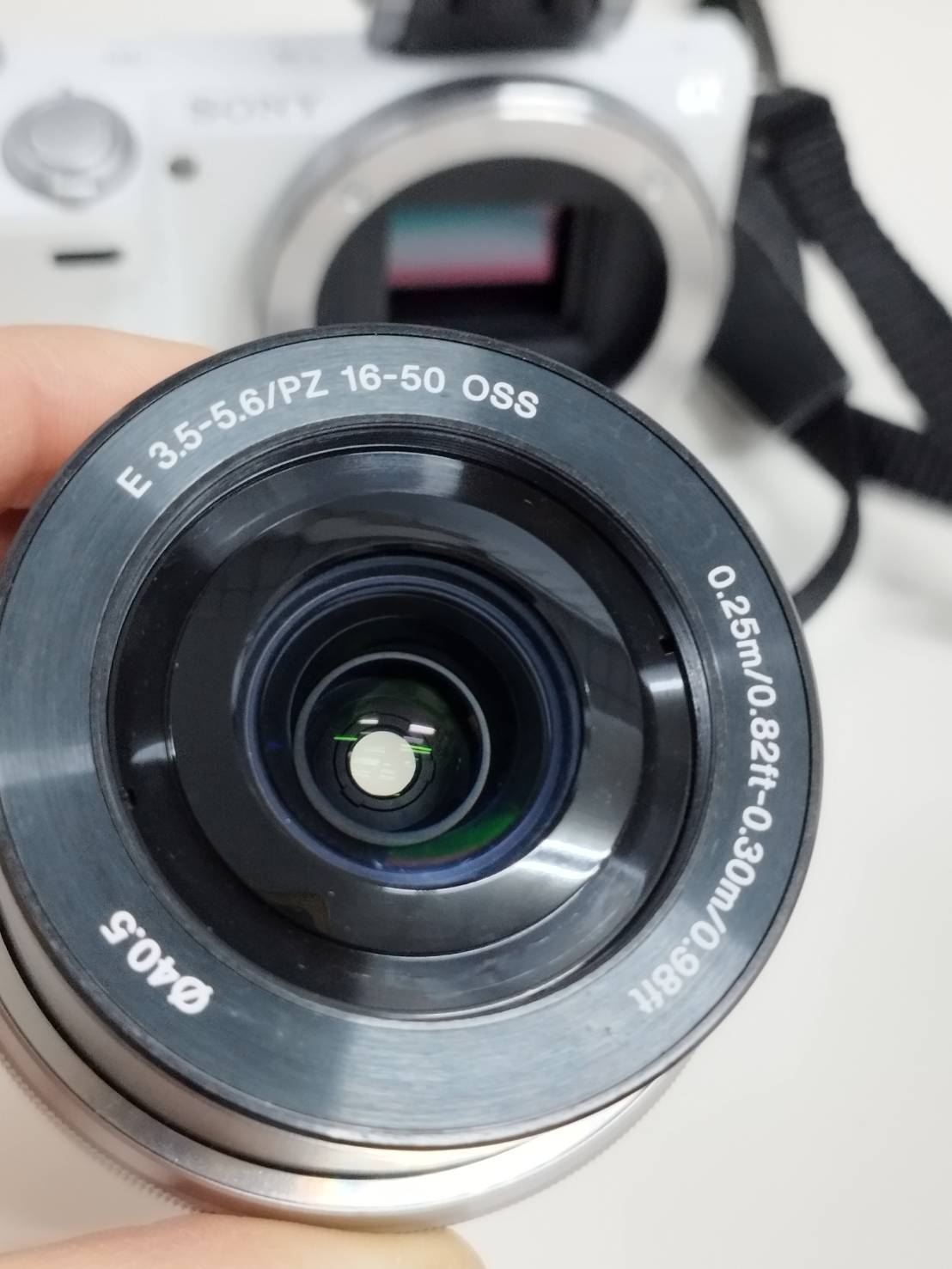 レンズ(SELP1650)に傷やカビ、くもりはありません。微量のチリ混入は見受けられますが、