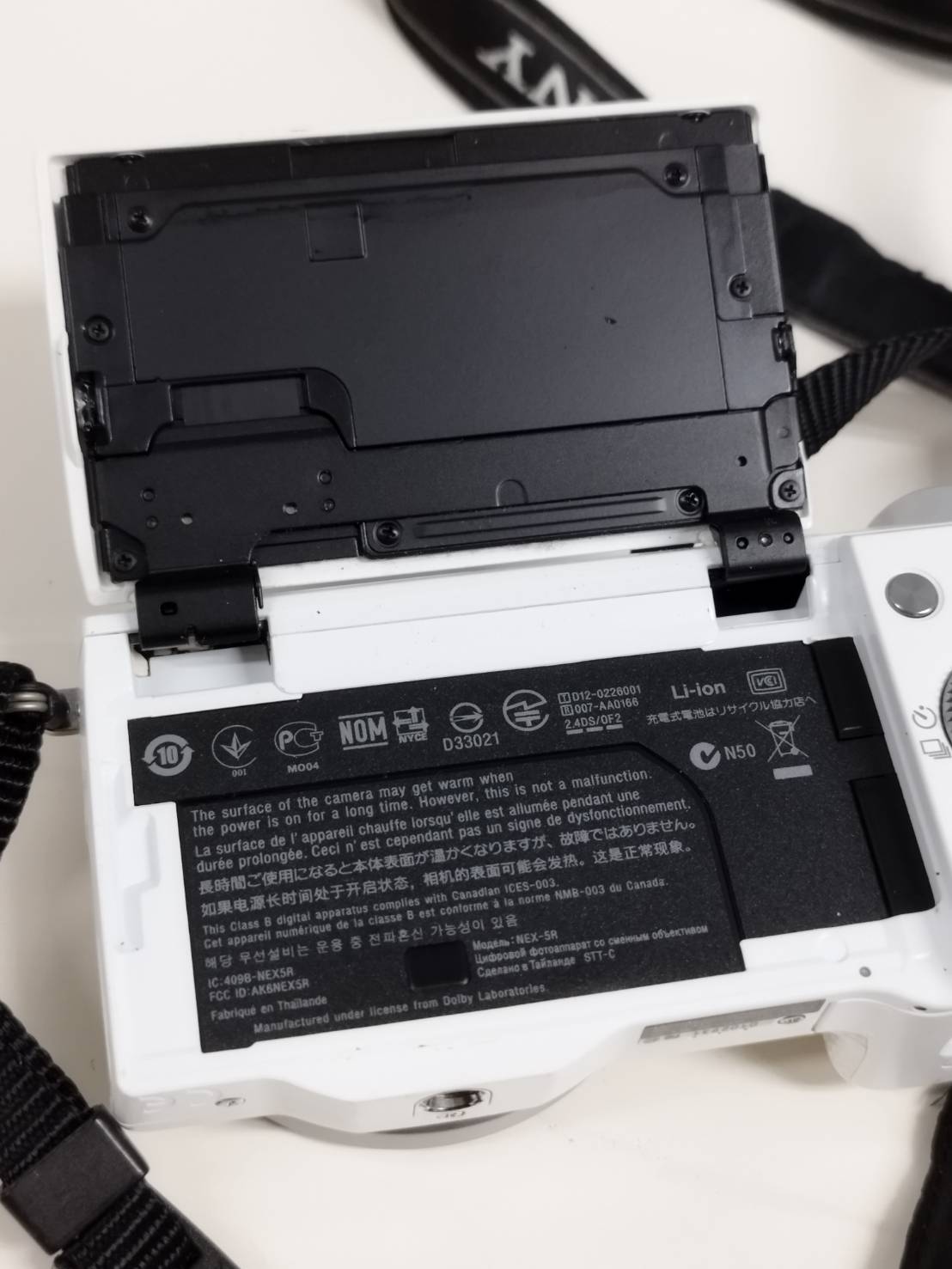 液晶モニターは目立たない程度の細かい傷あり、ストラップは劣化しています。