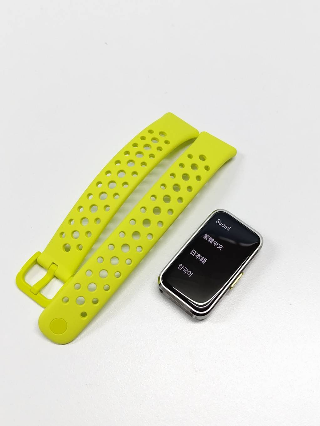 内容物:本体、バンド、充電ケーブル、印刷物(画像1枚目に写っているもの)