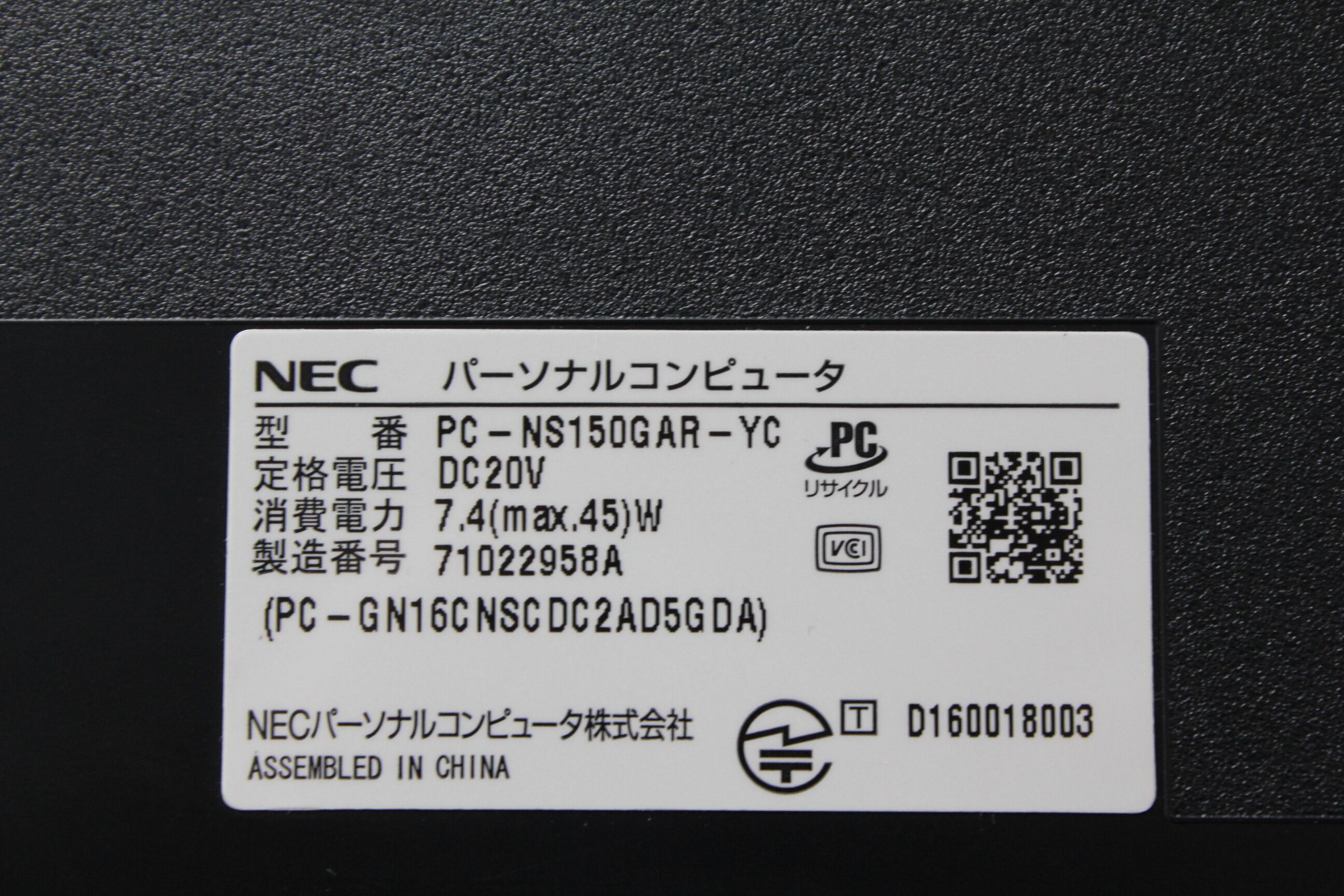 ・型番:PC-NS150GAR