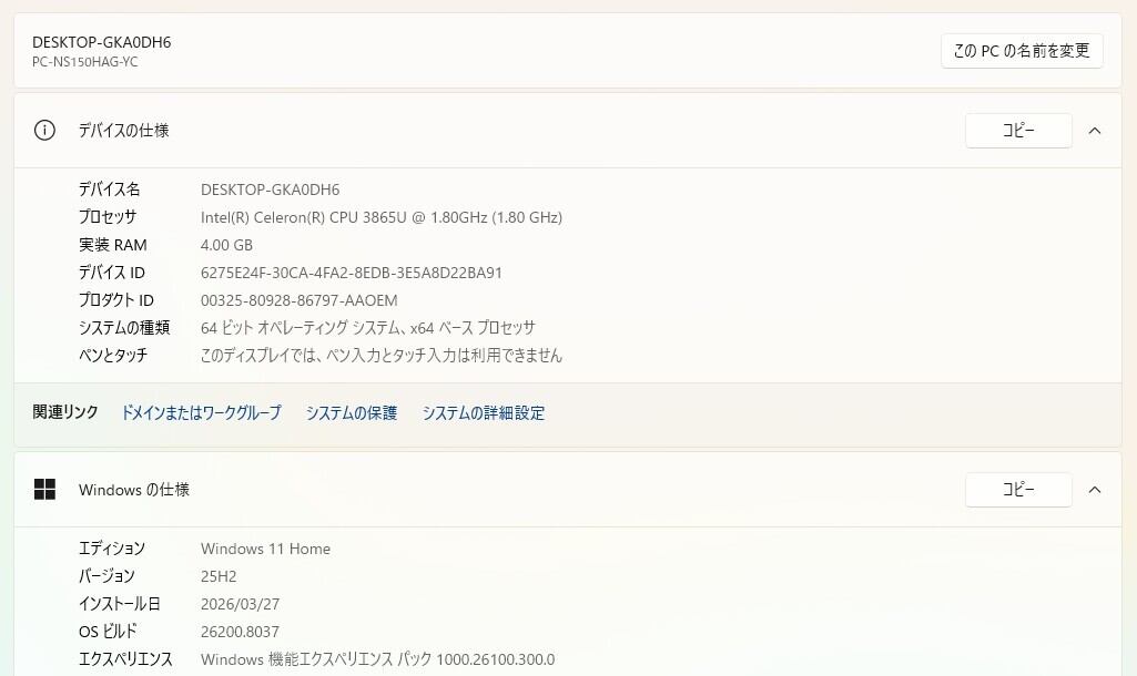 ・OS:Windows11 Home/25H2(ライセンス認証・Windows update済)